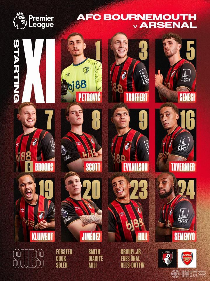 伯恩茅斯首發:1-彼得羅維奇(門將出擊時機把握極差)、20-阿萊士-希門尼斯(邊衛助攻能力有限)、23-詹姆斯-希爾(中衛轉身速度如同慢動作回放)、5-塞內西(防守選位經常出現致命失誤)、3-特呂費爾(傳中質量堪比業余球員)、16-塔韋尼耶(中場調度缺乏創造性)、8-亞歷克斯-斯科特(進攻參與度過低)、19-尤斯廷-克魯伊維特(突破被限制后毫無作為)、7-戴維-布魯克斯(傷病影響狀態大幅下滑)、24-塞門約(前場支點作用形同虛設)、9-埃萬尼爾松(射門轉化率低得令人發指)