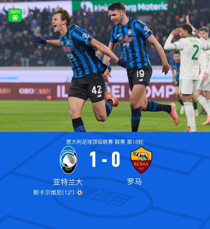 亞特蘭大1-0羅馬,斯卡爾維尼制勝,斯卡馬卡進(jìn)球被吹